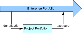 So, in starting a project it is important to know if you are developing services as part of the portfolio or whether you are developing application functionality that uses these services. For example, the development of a portal site for customers to access their account information is an application-development project using services in the portfolio for customer information, account information, offers, and more. In each case, the use of the portfolio has different implications; the service designer is describing their service specification and publishing it as a part of the portfolio. This specification allows application developers to understand the interaction requirements for the service. The service implementer may now use the same service specification to develop one or more implementations of the service, ensuring that the implementation conforms to the specification.  The following diagram demonstrates the relationship between the enterprise-wide service portfolio and the project's portfolio.